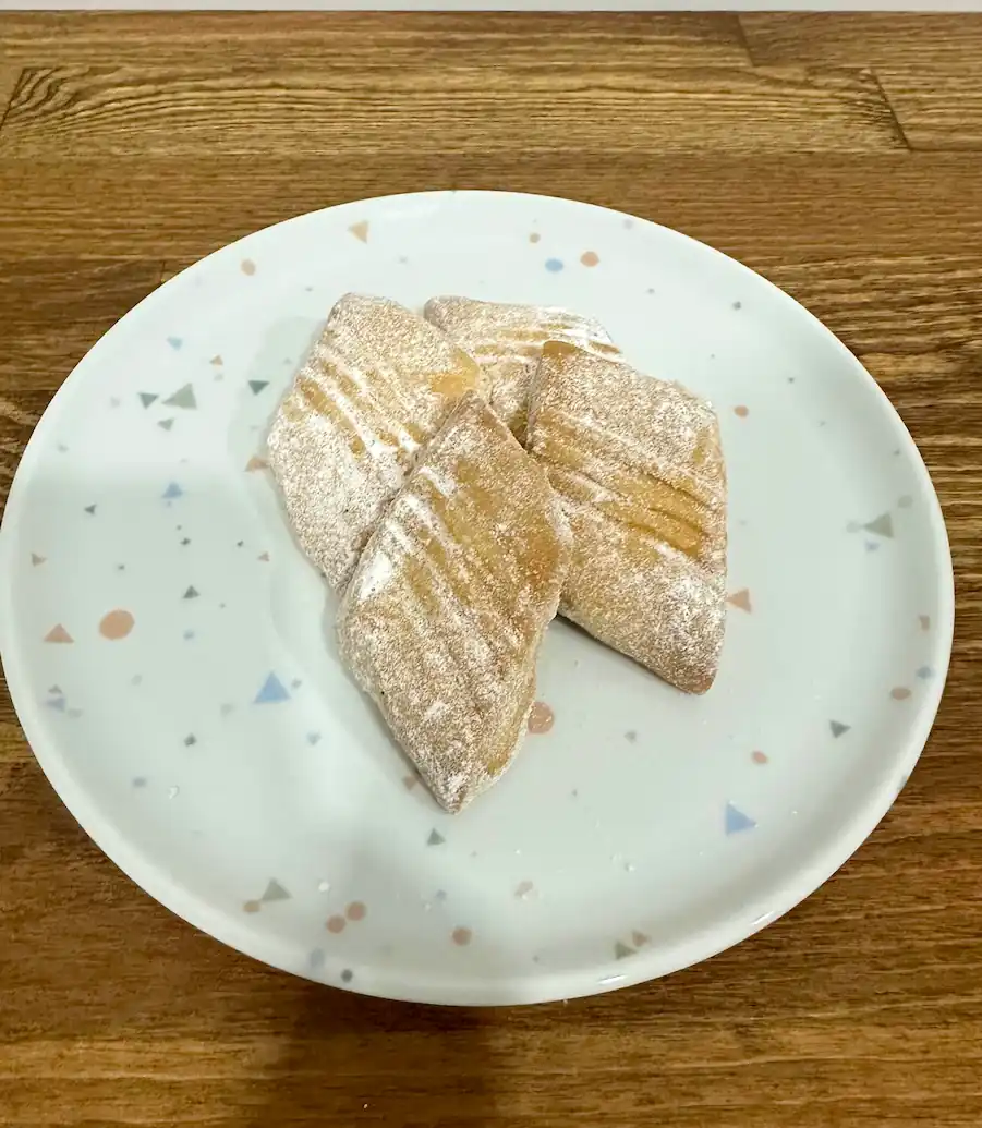 Ruloların sağ, sol ve üst kısmına çatalla hafifçe bastırarak şekil verin. Ardından çapraz olarak yan yana kesin.